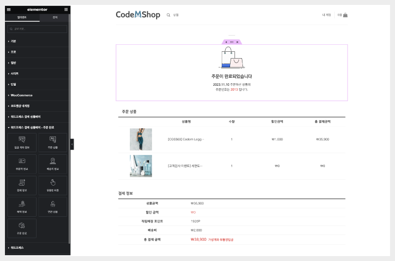 결제완료 완료 후 보여지는 결제완료 페이지를 우리 쇼핑몰 컨셉에 맞게 변경 해 보세요.