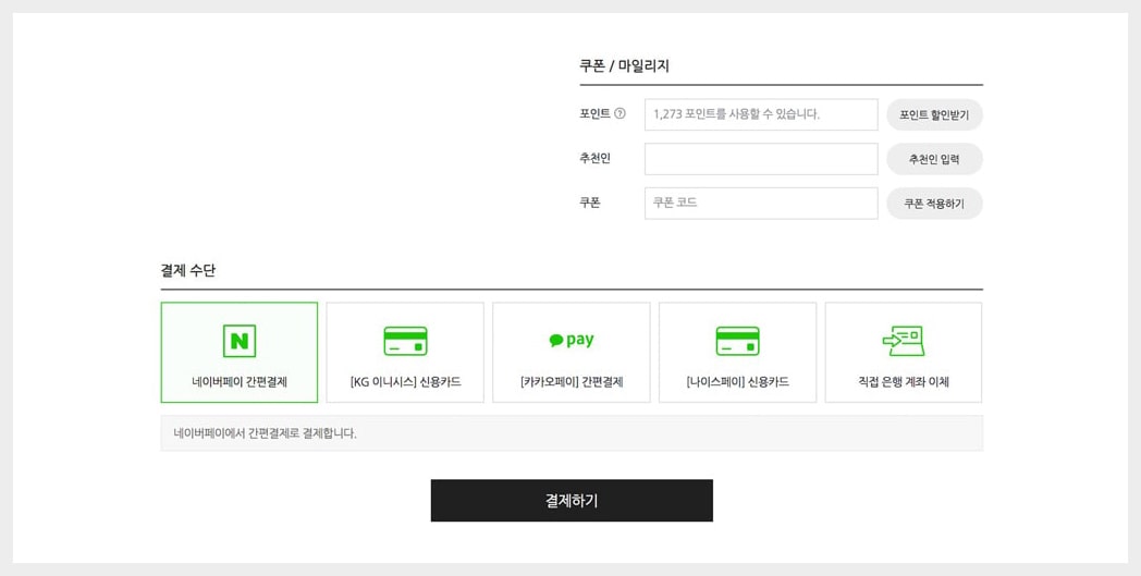 네이버페이 결제형은 쇼핑몰의 아이덴티티를 훼손하지 않기 위해