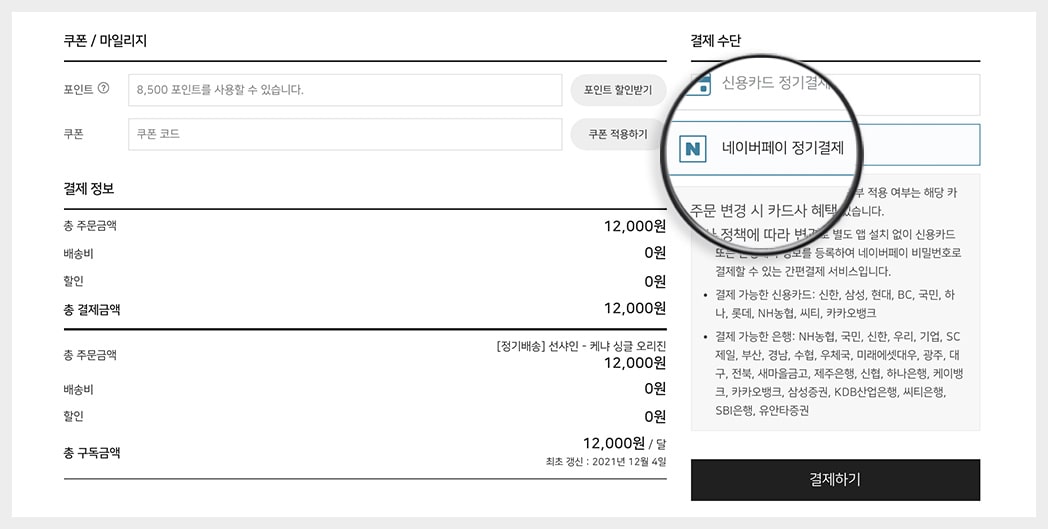 네이버페이의 장점인 네이버 아이디로 결제가 진행(주문형) 되는 것이 아닌