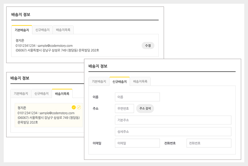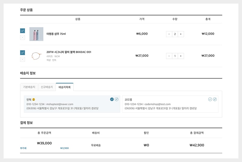 + 엠샵 주소 체크아웃 플러그인 – 체크아웃 페이지 내 주소 및 배송지 관리 기능