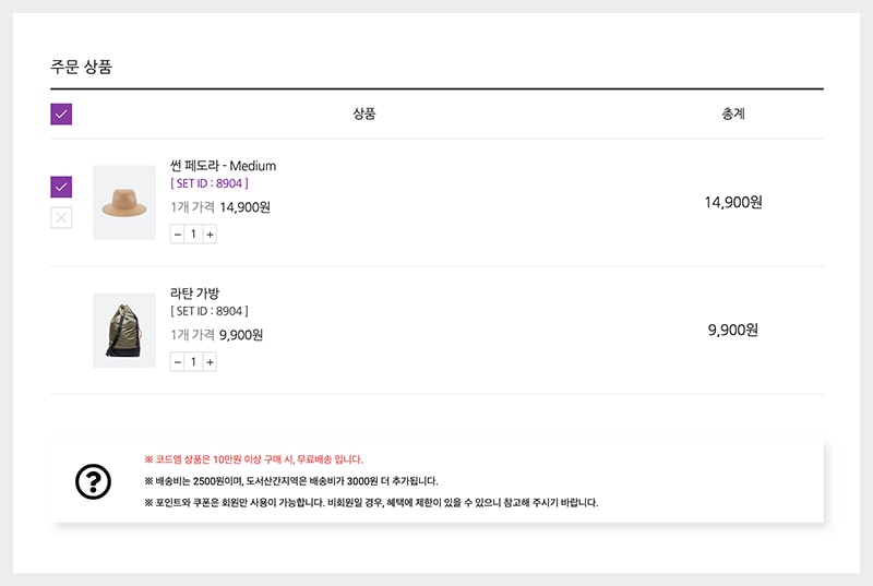 + 엠샵 바로구매 플러그인 – 체크아웃 페이지 내 선택 & 전체 구매 가능