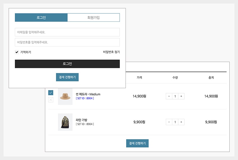 + 엠샵 멤버스 회원가입 플러그인 – 체크아웃 페이지 내 로그인, 회원가입, 비밀번호 찾기 기능