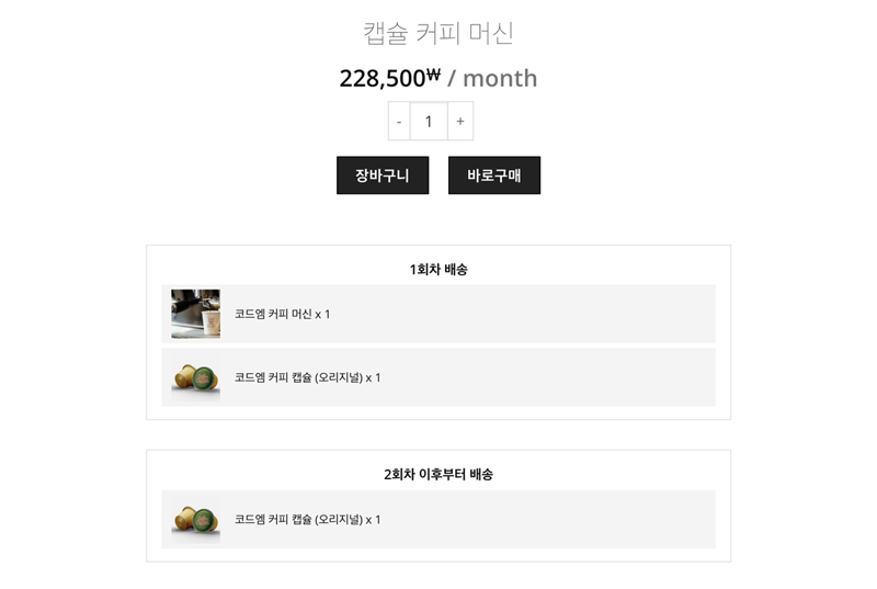 엠샵 D.I.Y 구독 상품 플러그인의 숏코드 기능으로 구독 상품 페이지를 원하는 스타일로 다양하게 제작할 수 있습니다.