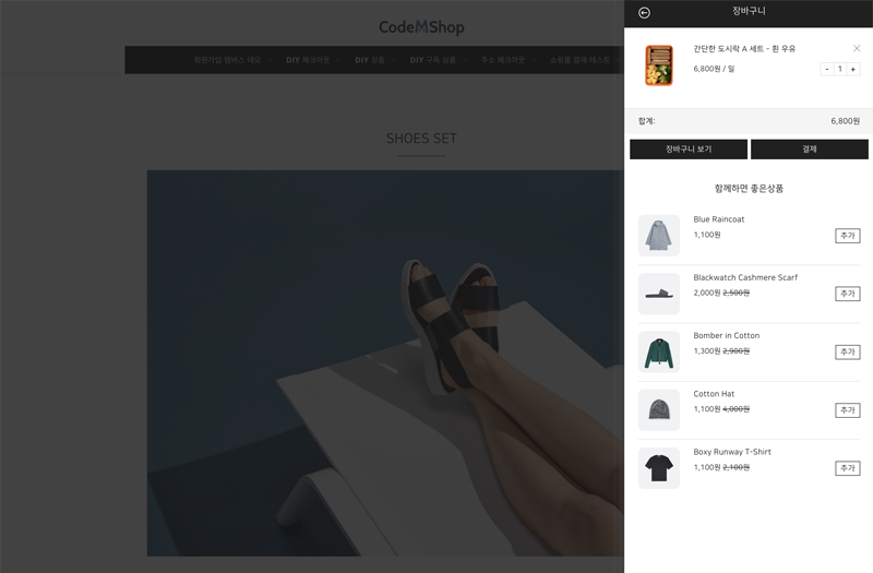 테스트 사이트에서 장바구니에 상품을 담고 카트로 이동 해 보세요.