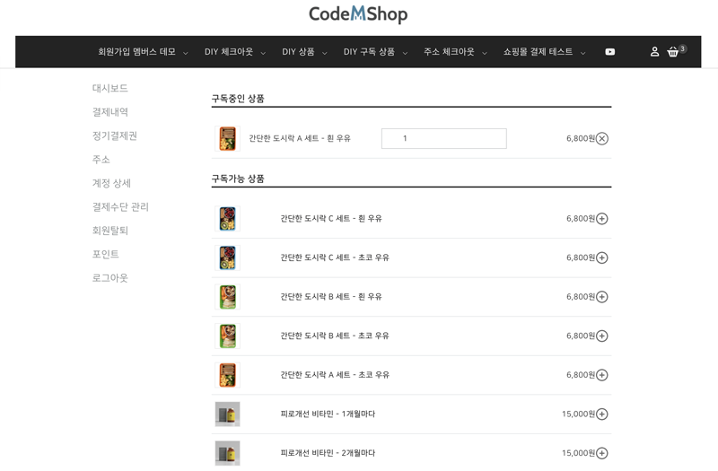 코드엠샵에서 심혈을 기울여 만든 엠샵 D.I.Y 구독 상품 플러그인으로