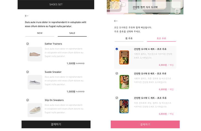 상품 선택 화면 및 선택 리스트를 원하는 스타일로 꾸밀 수 있는 다양한 템플릿을 제공합니다.