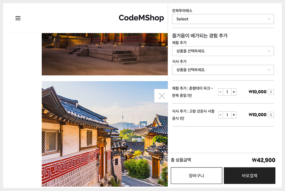 상품 선택 화면 및 선택 리스트를 원하는 스타일로 꾸밀 수 있는 다양한 템플릿을 제공합니다.