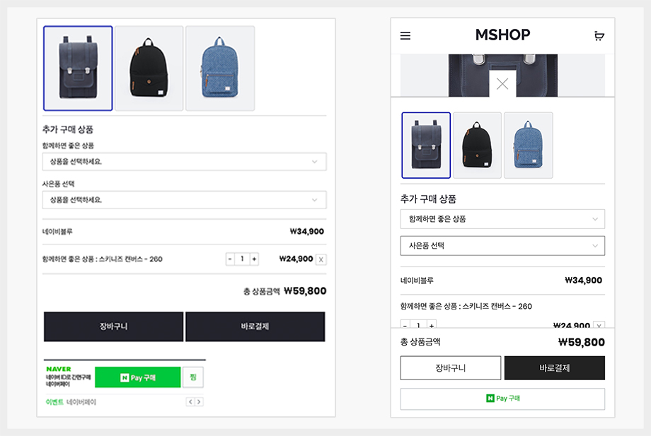 엠샵 D.I.Y 상품 플러그인은 모바일에 최적화된 구매 UX를 제공합니다.