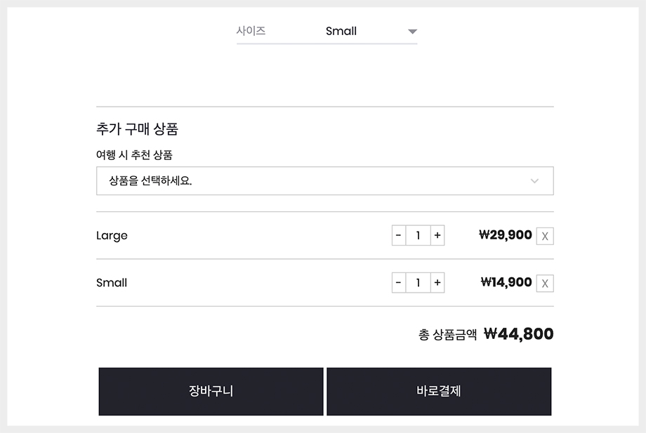 추가 구매 상품을 할인 된 가격으로 판매하거나, 단품으로 판매하지 않는 상품을 추가 구입 상품으로만 구입할 수 있도록 기획함으로 추가 매출을 기대할 수 있습니다.